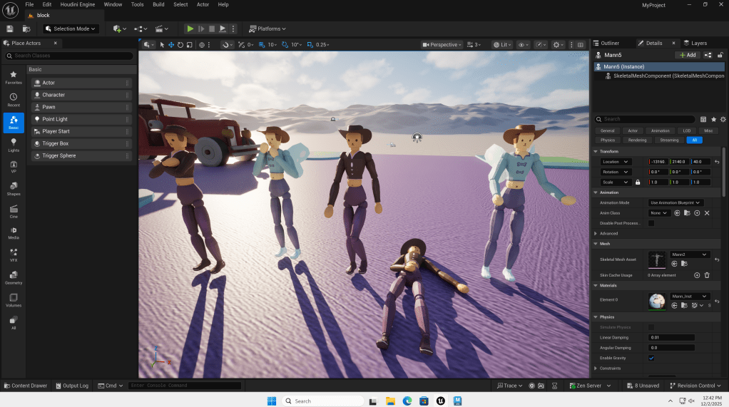 I learned the general process of game production in the Asset pipeline course, from modeling to, UV, Material, bone binding, and then to UE. In the end a scene is completed.
